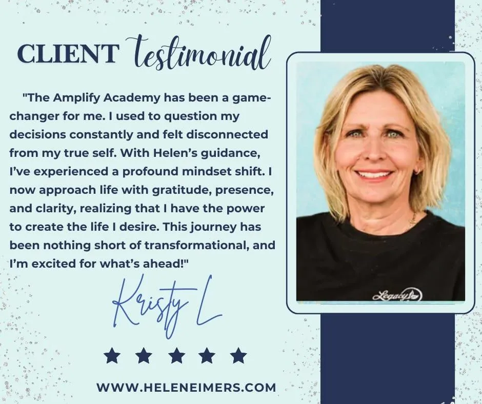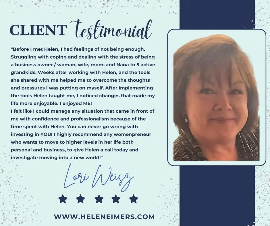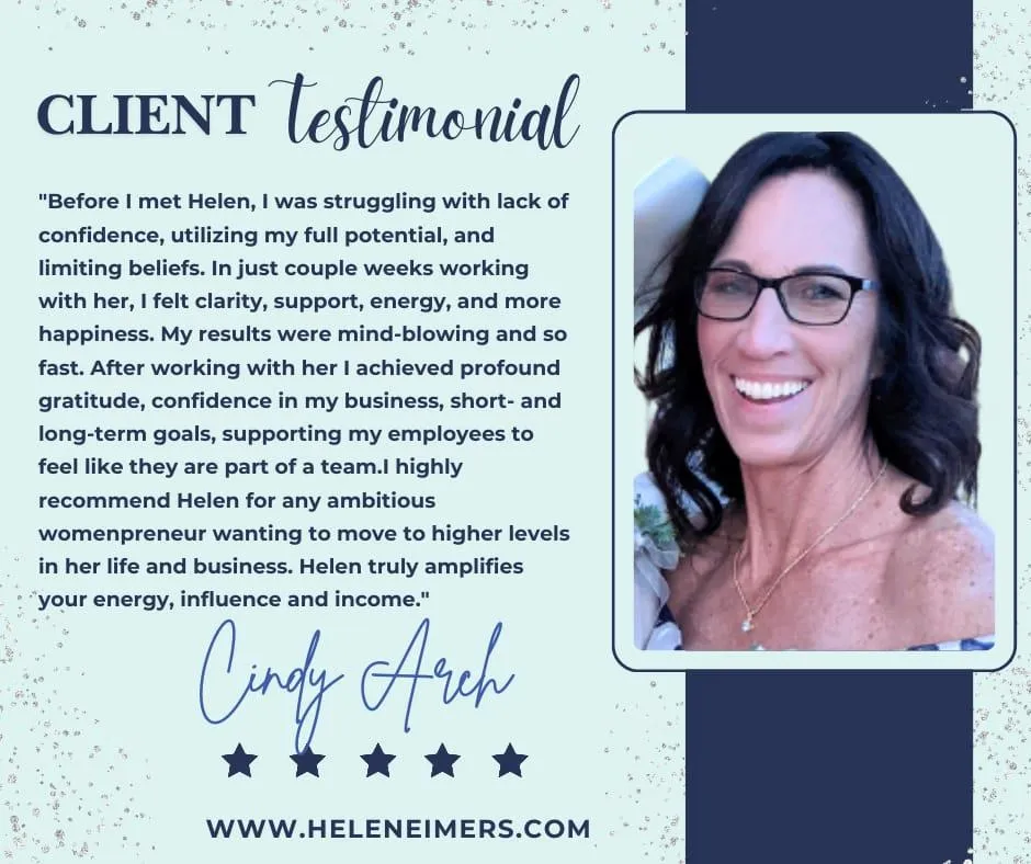 I’m Helen — a Success Coach, certified hypnotherapist, and energizer for ambitious women. My clients call me the “coach voice” in their head because I help them interrupt the drama, reset their perspective, and focus on what truly drives results.